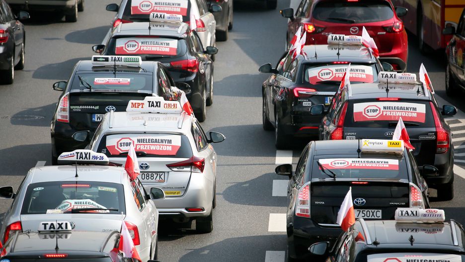 Taksówkarze - pod hasłem "STOP nielegalnym przewozom" - protestują przeciwko aplikacjom łączącym kierowców z pasażerami, jak Uber czy Bolt. Mimo iż rząd zamierza uregulować te kwestie, zapisy w projekcie ustawy nie są dla taksówkarzy zadowalające.