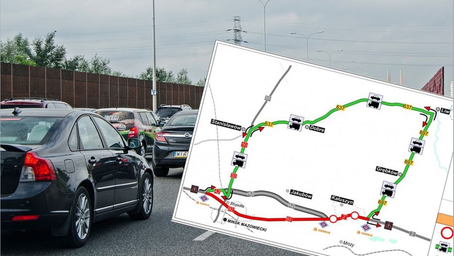 Prost dotyczy planowania nowego korytarza budowy linii 400 kV na terenie gminy - wskazuje GDDKiA i zaleca objazdy. Samochody osobowe powinny z drogi DK50 w Stanisławowie skręcić na DW637 do m. Pniewnik i dalej drogą powiatową przez Trawy do m. Warmiaki na DK50.