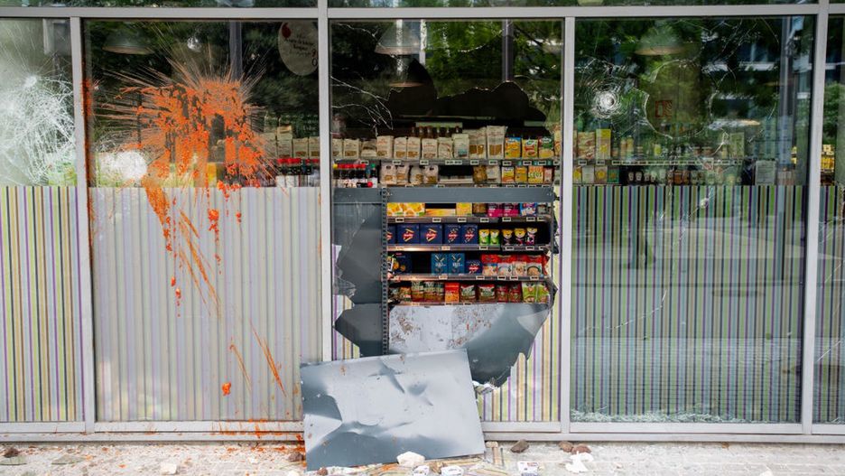 W internecie umieszczono film, na którym widać, jak uczestnicy zamieszek wjeżdżają autem do Lidla, niszcząc witrynę.