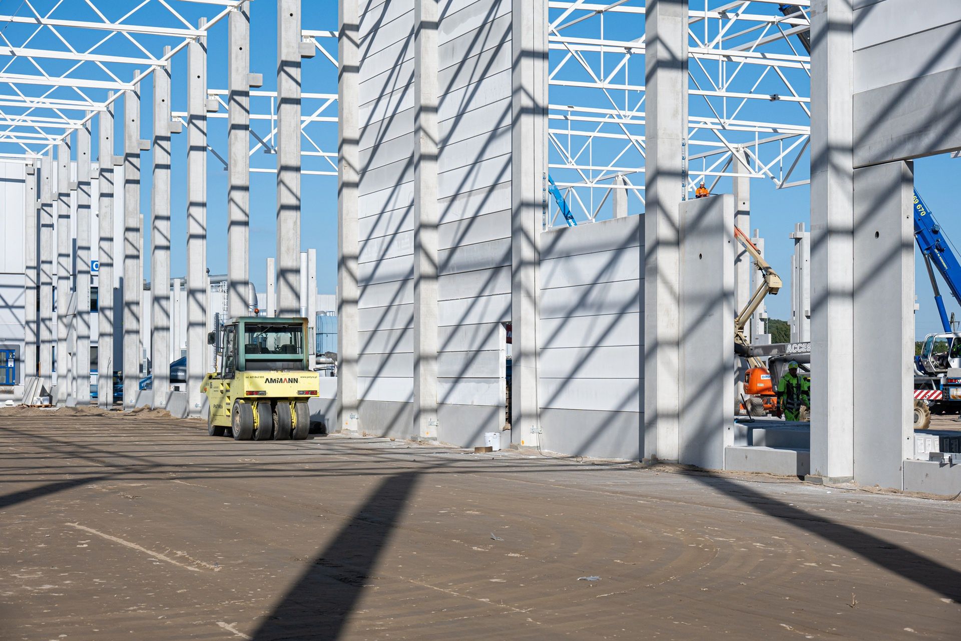 Już wkrótce na konstrukcji hali produkcyjno-magazynowej zawieszona zostanie wiecha, symbolizująca zakończenie stanu surowego otwartego.