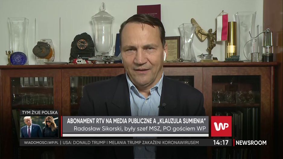 - Obecna władza wprowadziła filozofię, że prawa przestrzegamy w zależności od tego, co mówi nam własne sumienie. Lekarz może nie wykonać zabiegu, bo na tu nie pozwala sumienie. Mnie sumienie nie pozwala na finansowanie tej szczujni, tego tsunami kłamstw, które wylewa się z telewizji kiedyś-publicznej. Do tego wicepremier Jacek Sasin złożył publiczne oświadczenie, że Poczta Polska nie będzie ścigała ludzi za abonament. Nie mam telewizora, sumienie mi nie pozwala, napisałem odwołanie i zobaczymy, jak zostanie ono potraktowane – mówił w programie "Newsroom" był szef MSZ Radosław Sikorski.