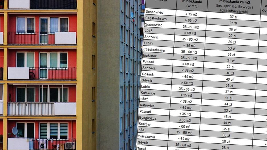 Gdzie jest najdrożej, a gdzie najtaniej? Przeciętny koszt najmu małego mieszkania za metr kw. bez opłat licznikowych i administracyjnych jest najwyższy w Warszawie (63 zł), Wrocławiu (55 zł) oraz Lublinie (53 zł). Najtańszy jest zaś wynajem dużych mieszkań w Toruniu (21 zł) i Bydgoszczy (26 zł).