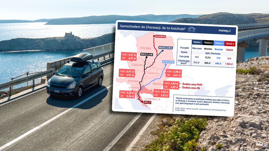 Posiłkując się danymi z serwisu autocentrum.pl oraz chorwacjaautem.pl oszacowaliśmy koszty dojazdu do Chorwacji, uwzględniając nie tylko zużycie paliwa, ale również opłaty za autostrady i winiety drogowe w krajach po drodze. Zestawienie obejmuje cztery przykładowe trasy - z Gdańska, Warszawy, Wrocławia i Rzeszowa.