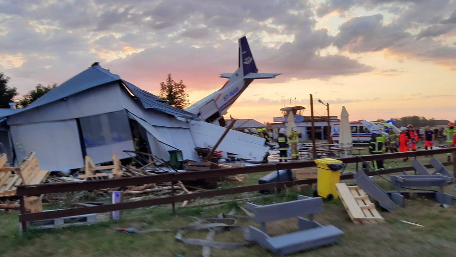 PAP podaje za Państwową Strażą Pożarną, że do wypadku doszło podczas lądowania w złych warunkach atmosferycznych. W hangarze, w który uderzył samolot, schroniło się 10 osób.