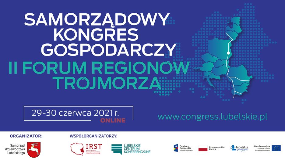 Samorząd Województwa Lubelskiego, Lubelskie Centrum Konferencyjne oraz Instytut Rozwoju Samorządu Terytorialnego Województwa Lubelskiego jako organizatorzy Samorządowego Kongresu Gospodarczego II Forum Regionów Trójmorza zapraszają do udziału w wydarzeniu. Kongres odbędzie się w dniach 29-30 czerwca br. w Lubelskim Centrum Konferencyjnym. Jego uczestnikami będą przedstawiciele regionów Trójmorza, świata nauki, polityki, biznesu oraz mediów.