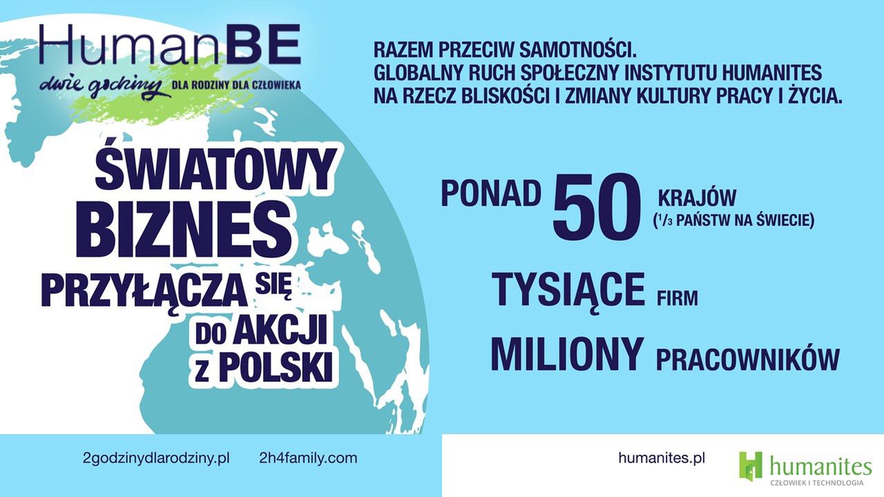 HumanBE – Dwie Godziny dla Rodziny/dla Człowieka - #2h4family jest jednym z kluczowych systemowych projektów Instytutu Humanites, obok takich projektów jak: Akademia Przywództwa Liderów Oświaty #APLO z wpływem ok. 1,5 mln. dzieci i młodzieży, którego celem jest kształtowanie kluczowych kompetencji poprzez rozwój przywództwa w edukacji, Centrum Etyki Technologii czy cyklicznej konferencji dla Liderów Biznesu "Spójne Przywództwo. Człowiek i Technologia, która w 2023 roku miała X edycję.