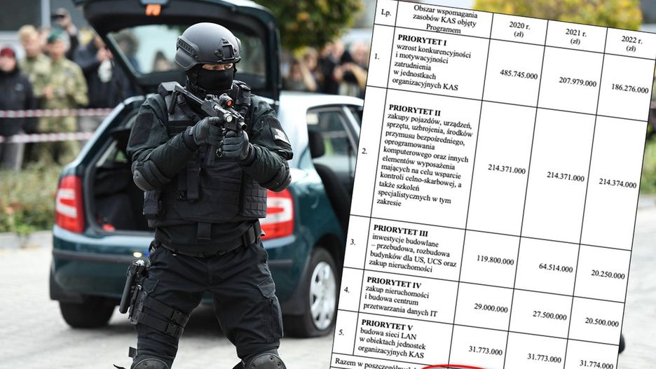 Więcej niż co czwarta złotówka z tego programu ma trafić na zakup pojazdów, urządzeń, sprzętu, uzbrojenia, środków przymusu bezpośredniego, oprogramowania komputerowego oraz innych elementów wyposażenia funkcjonariuszy, a także szkoleń specjalistycznych dla służb celno-skarbowych.