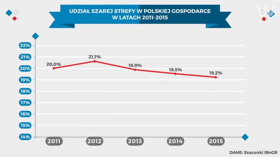 Według Instytutu Badań nad Gospodarką Rynkową udział szarej strefy w naszej gospodarce to ok. 19,2 proc. Przykładając te dane do naszego PKB oznacza to, że rocznie jest to ponad 100 mld dolarów.