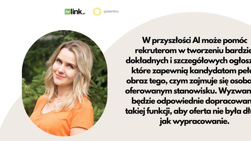 – W przyszłości AI może pomóc rekruterom w tworzeniu bardziej dokładnych i szczegółowych ogłoszeń, które zapewnią kandydatom pełen obraz tego, czym zajmuje się osoba na oferowanym stanowisku. Wyzwaniem będzie odpowiednie dopracowanie takiej funkcji, aby oferta nie była długa jak wypracowanie – mówi Karolina Antczak, ekspert marki pracodawcy w HRlink.