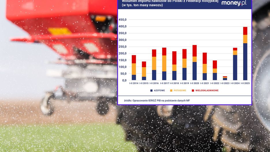 Import nawozów z Rosji do Polski osiągnął na początku 2025 r. rekordowe poziomy. Jak przekazał money.pl Instytut Ekonomiki Rolnictwa i Gospodarki Żywnościowej, tylko w styczniu i lutym sprowadziliśmy stamtąd prawie 400 tys. ton, o ponad 64 proc. więcej niż rok temu. Wejście w życie unijnych ceł na nawozy z Rosji i Białorusi planowane jest na lipiec.