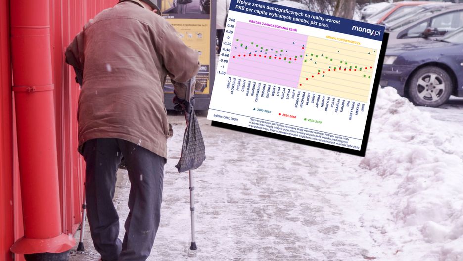 W krajach Europy i Kaukazu, w których zaangażowany jest EBOR, w latach 2024-2050 starzenie się ludności będzie obniżało roczną stopę wzrostu PKB per capita średnio o 0,36 pkt proc. W Polsce jednak, jak szacują ekonomiści z londyńskiej instytucji, ten efekt będzie silniejszy, sięgnie niemal 0,5 pkt proc. To oznacza, że skumulowany wzrost realnego (liczonego w cenach stałych) PKB na mieszkańca Polski w perspektywie tych 25 lat będzie o 25 proc. mniejszy niż byłby, gdyby struktura wieku ludności była stabilna. Tylko w czterech krajach z tej grupy - w Bośni i Hercegowinie, Grecji, Słowenii i Słowacji - demografia będzie jeszcze silniejszym hamulcem.