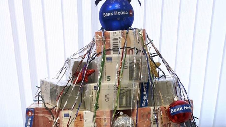 Taka choinka tylko w Rosji. Bank zrobił drzewko z milionów euro i dolarów