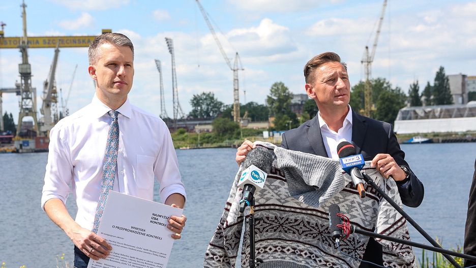 Prom póki co nie powstał, a marszałek Geblewicz na konferencji prasowej pokazał sweter dla Joachima Brudzińskiego. Polityk PiS nie odpowiedział nam jednak na pytanie, czy sam zamierza założyć sweter i czy czuje się przegranym w zakładzie.