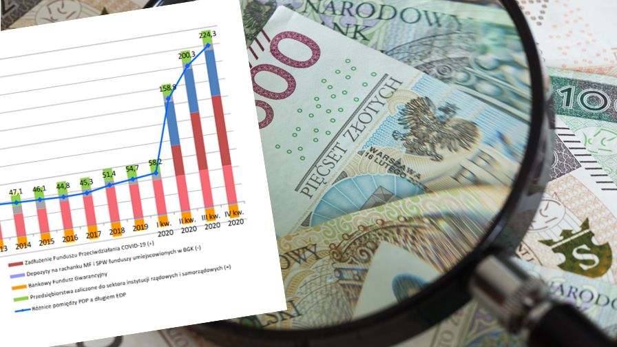 Prawie 7 proc. oraz ponad 57 proc. PKB - tyle wyniosły odpowiednio deficyt oraz dług sektora finansów publicznych w Polsce według metodologii Eurostatu, czyli tej najbardziej wiarygodnej. Dane pokazują, jak bardzo polskie państwo zadłużyło się, aby walczyć ze skutkami pandemii Covid-19.
