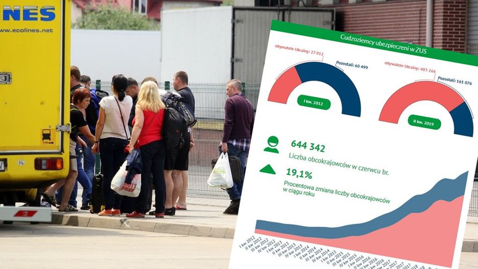 W porównaniu do ubiegłego roku liczba imigrantów zapisanych do ZUS wzrosła o ponad 19 proc. Obywateli Ukrainy był ubezpieczonych w ZUS było o blisko 20 proc. więcej niż w analogicznym okresie 2018 r.