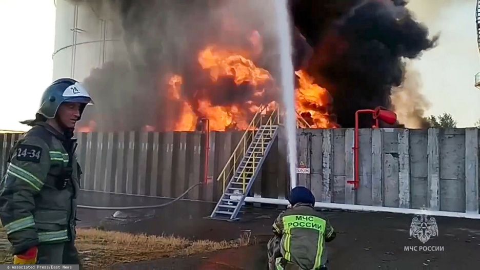 Jak informuje "The Moscow Times", teraz w płomieniach stanął kolejny skład ropy w obwodzie rostowskim po nocnym ataku dronów. I choć gubernator regionu nie wspomina we wpisie na Telegramie o składzie ropy, "Moscow Times" powołuje się na film, który ma przedstawiać słup czarnego dymu.