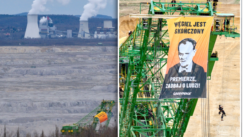 Na konstrukcji wywiesili transparenty z podobizną premiera Donalda Tuska i hasłami: "Węgiel jest skończony. Premierze, zadbaj o ludzi" oraz "Sprawiedliwa transformacja teraz". Aktywiści domagają się od premiera wyznaczenia realistycznej daty odejścia daty od węgla dla Turowa.