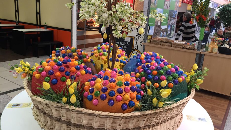 Niewykluczone, że niemiecki supermarket w Schwedt też przyciąga polskich klientów ozdobami czy dekoracjami, które ciągle ciężko znaleźć w sklepach nad Wisłą. W markecie znaleźliśmy na przykład... już pokolorowane pisanki. 10 sztuk kosztowało niecałe 2,50 euro (trochę ponad 10 złotych). Również sam wystrój marketu dla Polaka może być zaskoczeniem. W Oder Center składają się na niego na przykład żywe zające, a nawet kury.