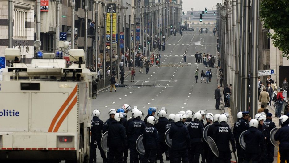 Zasieki, armatki wodne, wozy policyjne i uzbrojeni policjanci - tak w niedzielę wygląda dzielnica w Brukseli, gdzie mieszczą się unijne instytucje.