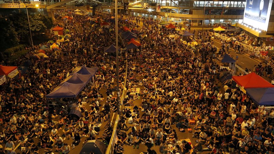 Jak relacjonuje agencja Reutera, w stanowiącej centrum protestów dzielnicy Admiralty, w pobliżu siedziby władz, panuje obecnie atmosfera festynu. Pośród drapaczy chmur, na ulicy będącej wcześniej jedną z najbardziej ruchliwych arterii, rozstawiono około 200 namiotów. Setki demonstrantów spędziły tam jedną z najspokojniejszych nocy od początku protestów. Pomiędzy przemówieniami niektórzy grali na gitarach, grali w karty czy czytali. W prowizorycznych klasach odbywały się lekcje.