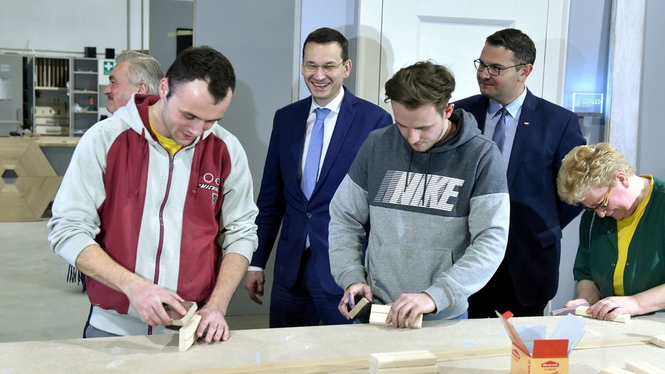 Morawiecki w piątek wieczorem odwiedził rodzinną firmę meblarską Ryś, która dzięki unijnemu wsparciu z programu Innowacyjna Gospodarka, wybudowała nowoczesną fabrykę w Polance koło Myślenic w woj. małopolskim.