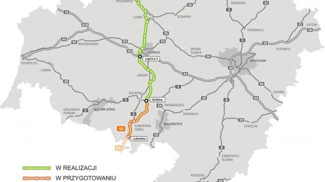 Cała droga ma mieć łączną długość 32 kilometrów. Jednak inwestycja została podzielona na dwa zadania. Odcinek Bolków - Kamienna Góra, który liczył będzie 16,1 km ma wybudować PORR S.A. Koszt to ponad 1,5 mld zł.