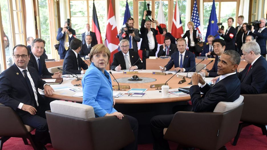 Polityka Zachodu wobec Rosji w związku z kryzysem na Ukrainie była głównym tematem pierwszego dnia szczytu G7 w niedzielę.
