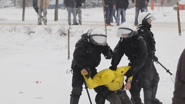 Manifestujący m.in. wyrywali słupki podtrzymujące okoliczne drzewa i rzucali nimi oraz petardami w policjantów. Skandowali _ gestapo, gestapo _ i _ policja, zostaw górnika _. Ok. godz. 15 policjanci oddali salwy z broni gładkolufowej w powietrze, a potem również w kierunku atakujących ich osób. Po pewnym czasie manifestanci zaczęli się rozchodzić.