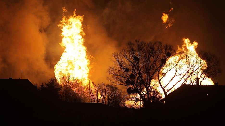 Eksplozja gazociągu wysokiego ciśnienia koło Poznania spowodowała gigantyczny pożar. Doszczętnie spłonęły trzy domy mieszkalne i budynek użytkowy. Na szczęście nikt nie zginął. Wojewoda wielkopolski Zbigniew Hoffman obiecał pomoc finansową dla rodzin.