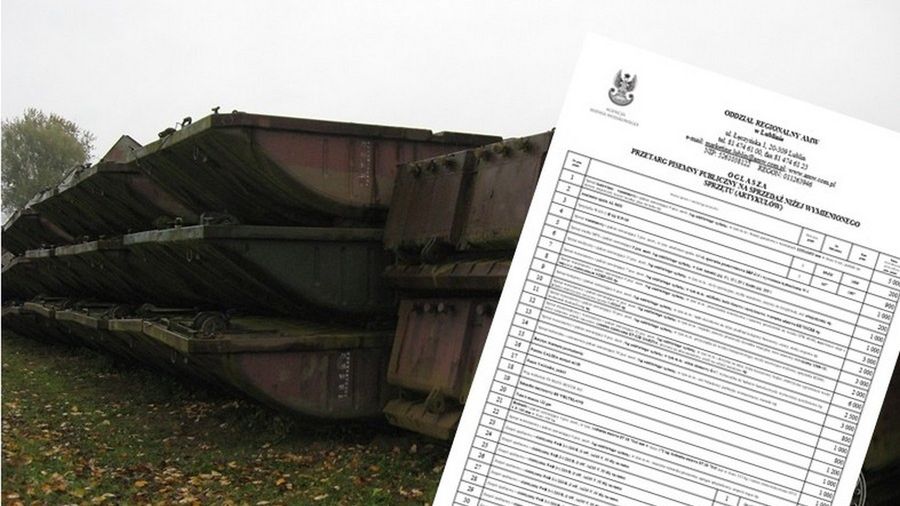 Sprawdziliśmy, co na niej zajdziemy. Na przykład elementy parku pontonowego PP-64, czyli części do budowy mostu pontonowego. Za 20-elementowy most 27,5 tys. zł, większy – 32 elementowy to już koszt rzędu 45 tys. zł.