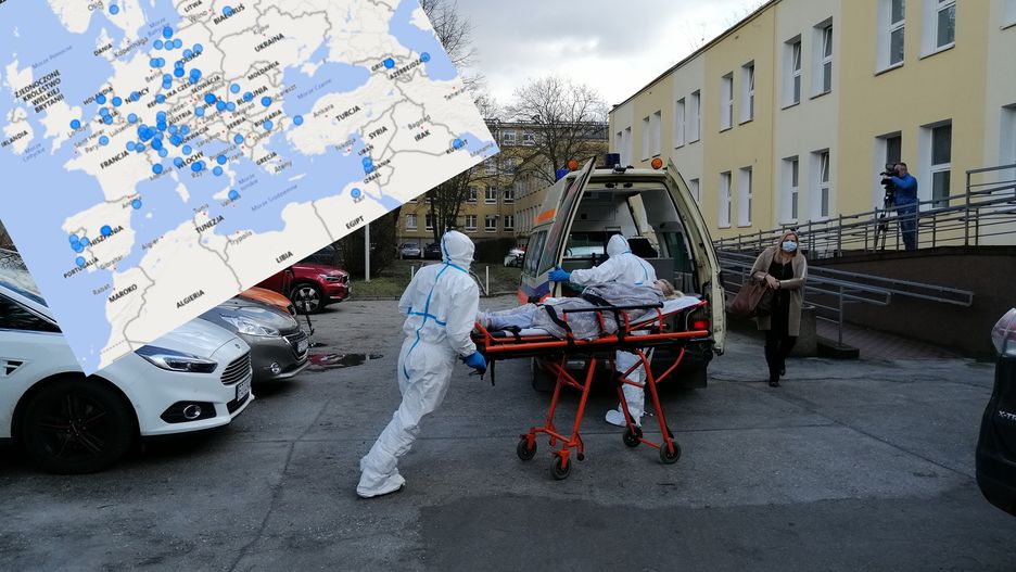 Na mapie widać wyraźnie, że osoby z terenów, gdzie codziennie jest kilkaset nowych przypadków, rozjechały się po Europie. Kilkanaście z nich jest w Polsce, m.in. w Warszawie, na Śląsku czy Gdańsku.