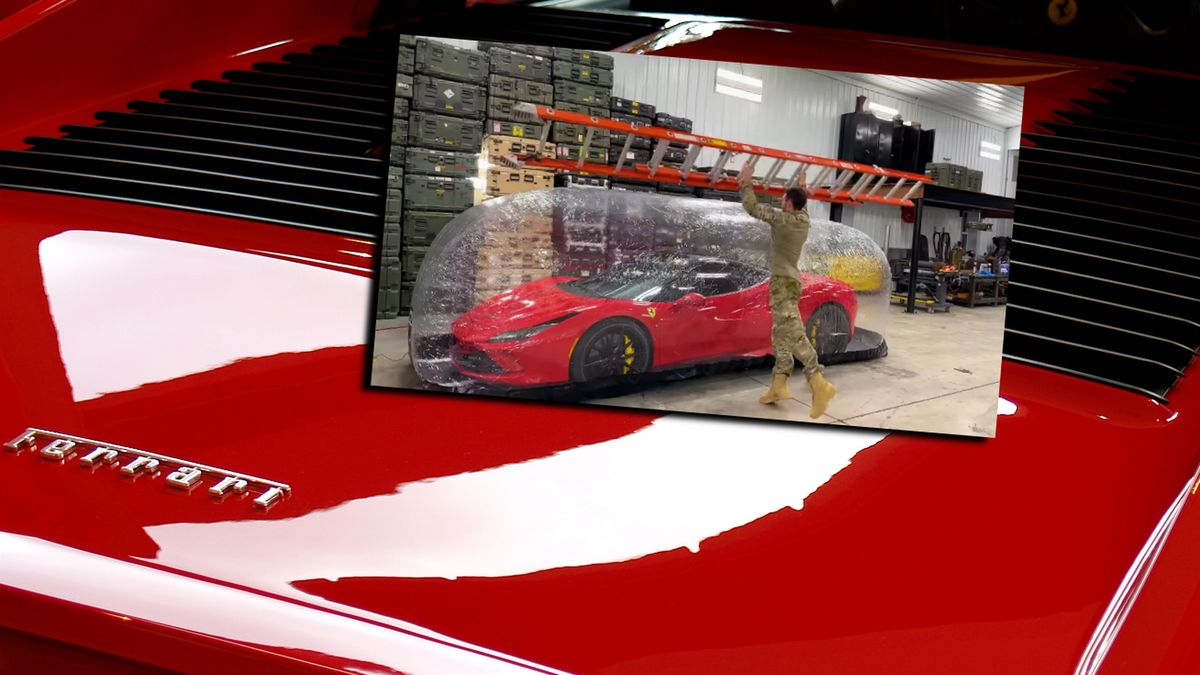 Następnie wyrusza nim na trasę, która wygląda jak pagórkowaty odcinek specjalny rajdu samochodowego. WhistlinDiesel jeździ nisko zawieszonym Ferrari po szutrze, trawie i zaroślach, wchodzi w zakręty bokiem, "kręci bączki". Na koniec wokół auta roztacza folię, którą napełnia powietrzem, tworząc szczelną "bańkę ochronną". W tak zabezpieczony samochód rzuca różnymi przedmiotami, które odbijają się od "bańki".