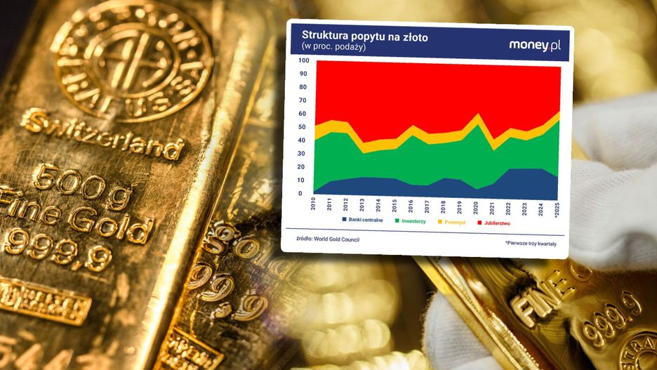 W latach 2022-2024 banki centralne i inne instytucje państwowe odpowiadały za około 23 proc. całkowitego popytu na złoto. Momentami kupowały go więcej niż inwestorzy, co w ostatnich dekadach nie ma precedensu. W ubiegłym roku udział banków centralnych nieco zmalał, częściowo dlatego, że same ograniczyły zakupy, a częściowo dlatego, że mocno wzrósł popyt inwestycyjny.