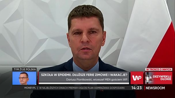 - Zastanowimy się, na razie nie przewidywaliśmy zmiany terminów ferii - odpowiedział wiceminister edukacji Dariusz Piontkowski zapytany o pomysł wiceministra Andrzeja Guta-Mostowego odpowiedzialnego za turystykę. Przypomnijmy, Gut-Mostowy w programie "Money. To się liczy" mówił o możliwości wydłużenia ferii zimowych w czasie pandemii tak, aby nie było nakładania się grup. Jak tłumaczył Piontkowski, ferie odbywają się od połowy stycznia do połowy lutego. - Dotąd było spowodowane to tym, żeby nie było natłoku w miejscowościach turystycznych, teraz dochodzi element epidemiczny - mówił Piontkowski. Zaznaczył jednak, że nie wie, czy rozciągnięcie ferii w czasie wpłynęłoby na ograniczenie pandemii. - Dziś nie wiemy nawet, czy stoki narciarskie zostaną otwarte i czy sezon zimowy będzie normalnie mógł funkcjonować - dodał. W podobnym tonie Dariusz Piontkowski odpowiedział o zmianę terminu wakacji. - Nie rozmawialiśmy jeszcze na ten temat - powiedział.