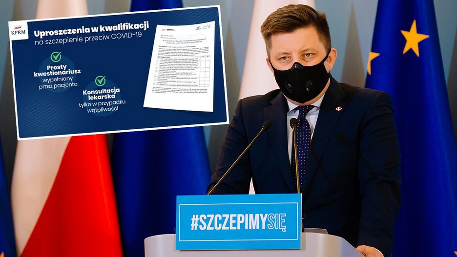 - To jest prosty kwestionariusz. Jeśli wszystkie odpowiedzi będą pozytywne, z automatu zostanie zakwalifikowany do szczepienia. W razie jakiejkolwiek wątpliwości pacjent będzie kierowany do lekarza - powiedział Michał Dworczyk.