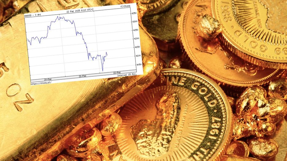 Po osiągnięciu absolutnie rekordowego poziomu 4380 dolarów za uncję (31 gramów) w poniedziałek, cena złota spadła we wtorek nad ranem nawet do okolic 4040 dol., czyli grubo ponad 6 proc. Według analityków to długo oczekiwana korekta po gwałtownych wzrostach. Następnie kurs za kruszec odbił, przekraczając 4100 dol. za uncję.