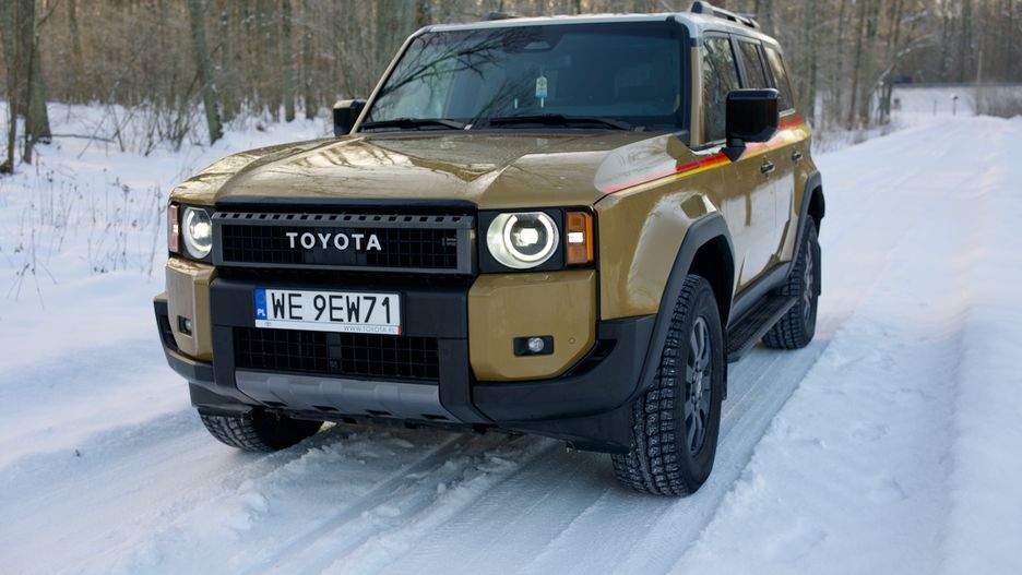 Toyota Land Cruiser 250 ma 492 cm długości, 194 cm szerokości, 192 cm wysokości i ponad 22-centymetrowy prześwit. Jej rozstaw osi to 285 cm. To bez wątpienia duży samochód, który zaznacza swoją obecność, gdziekolwiek się pojawi. Do tego waży 2,5 tony, a z 18-calowymi oponami o wyższym profilu wygląda jak taran dla przeszkód. Gdy odebrałem kluczyki, taką przeszkodą były opady marznącego deszczu i śniegu. Toyota Land Cruiser dała poczucie pewnego prowadzenia i bezpieczeństwa.