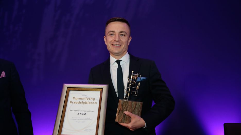 Michał Świerczewski, współzałożyciel i prezes zarządu spółki x-kom, laureatem VI edycji nagrody "Dynamiczny Przedsiębiorca"; przyznawanej przez organizację audytorsko-doradczą Grant Thornton.