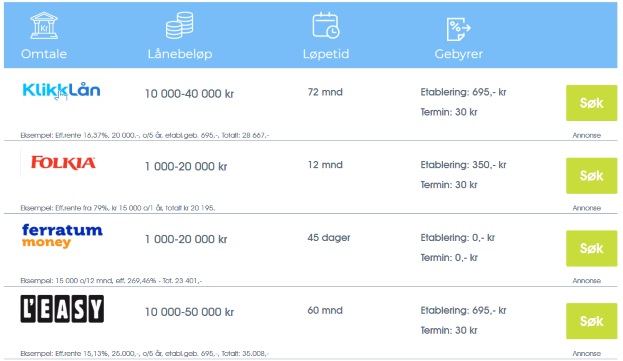 - porównaj oprocentowanie i koszty pożyczki - to jeden z najważniejszych czynników. Nikt nie chce płacić za pożyczkę więcej niż to konieczne. Na szczęście z pomocą ponownie przychodzi Internet. Polacy mieszkający w Norwegii mogą korzystać z porównywarki pożyczek norskkreditt.no i w kilka chwil wybrać dla siebie najkorzystniejsze rozwiązanie. Zawiera ona oferty wszystkich liczących się w Norwegii firm i instytucji, takich jak: Bank Norwegian, Instabank, Folkia, Ferratum, L'Easy, Thor, Klikklan i wielu więcej.