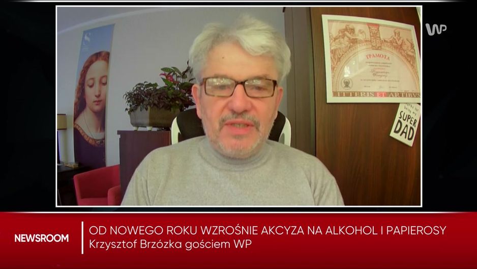 Od nowego roku akcyza na alkohol i papierosy ma wzrosnąć. - To jest krok w dobrą stronę, ale trzeba mieć świadomość, że z całą pewnością nie jest to krok w interesie zdrowia publicznego, ponieważ nadal będzie różnicowany czysty alkohol zawarty w piwie, winie czy wódce - powiedział w programie "Newsroom" były szef PARPA Krzysztof Brzózka. - Pomijając już fakt, że podwyżka jest raczej symboliczna, bo w przypadku butelki wódki będzie to wzrost o około 1,20 zł, to jakaś droga jest wytyczona, chociaż ta droga jest naprawdę bardzo słaba. Bo owszem wódka 1,20 zł podwyżki, ale w przypadku puszki piwa to już jest 5 groszy. Nie wierzę, że rząd przejmuje się naszym zdrowiem w przypadku alkoholu. Informacje o tym, że cena alkoholu musi wzrosnąć, słane były przynajmniej od 6-7 lat. Nigdy Ministerstwo Finansów nie było na to otwarte - dodał.