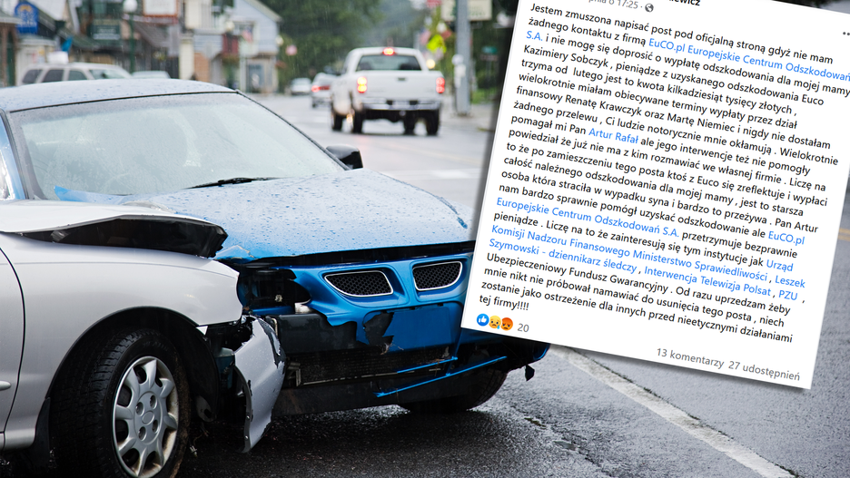 Europejskie Centrum Odszkodowań (EuCO) znalazło się na ostrym zakręcie. Z opóźnieniem wypłaca klientom odszkodowania, które pomogło im wywalczyć od ubezpieczyciela w sądzie. Zdarza się, że niektóre osoby czekają na pieniądze rok. Ludzie tracą cierpliwość. Chwytają się ostatniej deski ratunku — np. takiej jak ta poniżej.