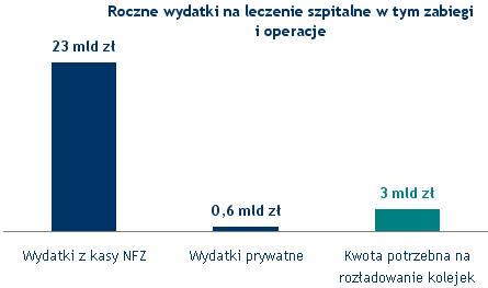 Na rozładowanie kolejek do szpitali potrzeba 3 mld złotych By zdobyć te pieniądze, wystarczyłoby podniesienie składki zdrowotnej średnio o 15 złotych miesięcznie. |